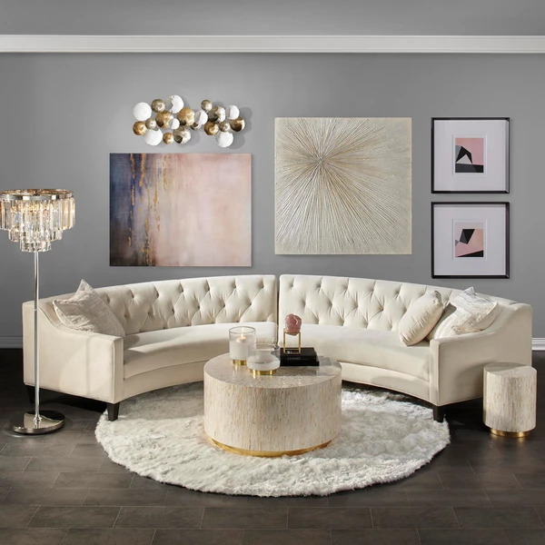 Our Alexandria Mosaic Table is the prettiest central perch for entertaining. Mother-of-pearl mingles with a cool ivory finish, creating a light-catching mosaic. A go-to golden leaf base elevates our glam design.