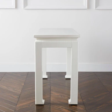 Offering a modern spin on the traditional Ming-style silhouette, this console exudes simple elegance in acacia wood with a glossy white finish.