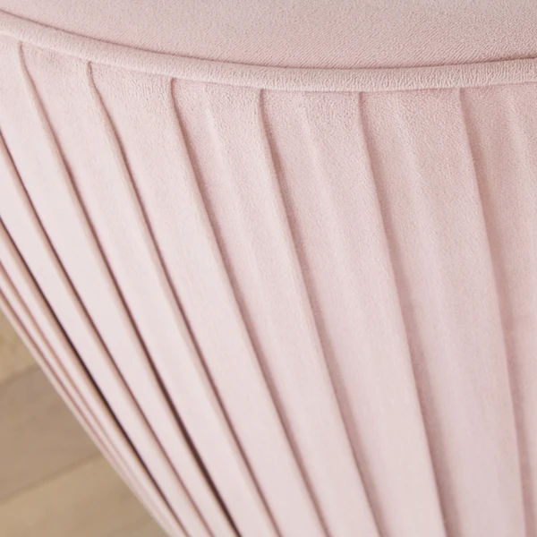 Sleek, chic, and velvety soft with a side of glam to add extra seating to any room, this plush chair with feminine pleating is the perfect just-because chair for a glam space. Shown in Velvet Blush.