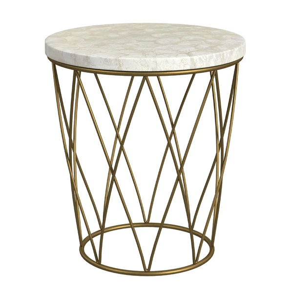 The Mara Round End Table has a beautifully crafted Capiz Inay top with intersecting tapered metal base.