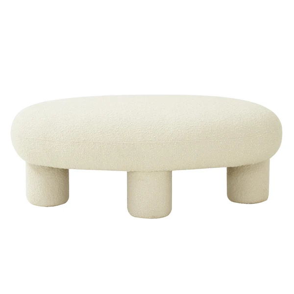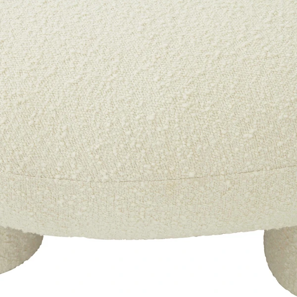 Plush bouclƩ fabric adds to the cozy-chic vibe of this comfortably cushioned ottoman.