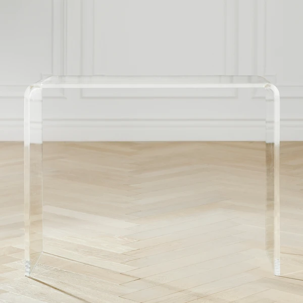 Perfect for adding an open and airy feel to the entryway, this console is crafted of clear acrylic with an iconic waterfall design.